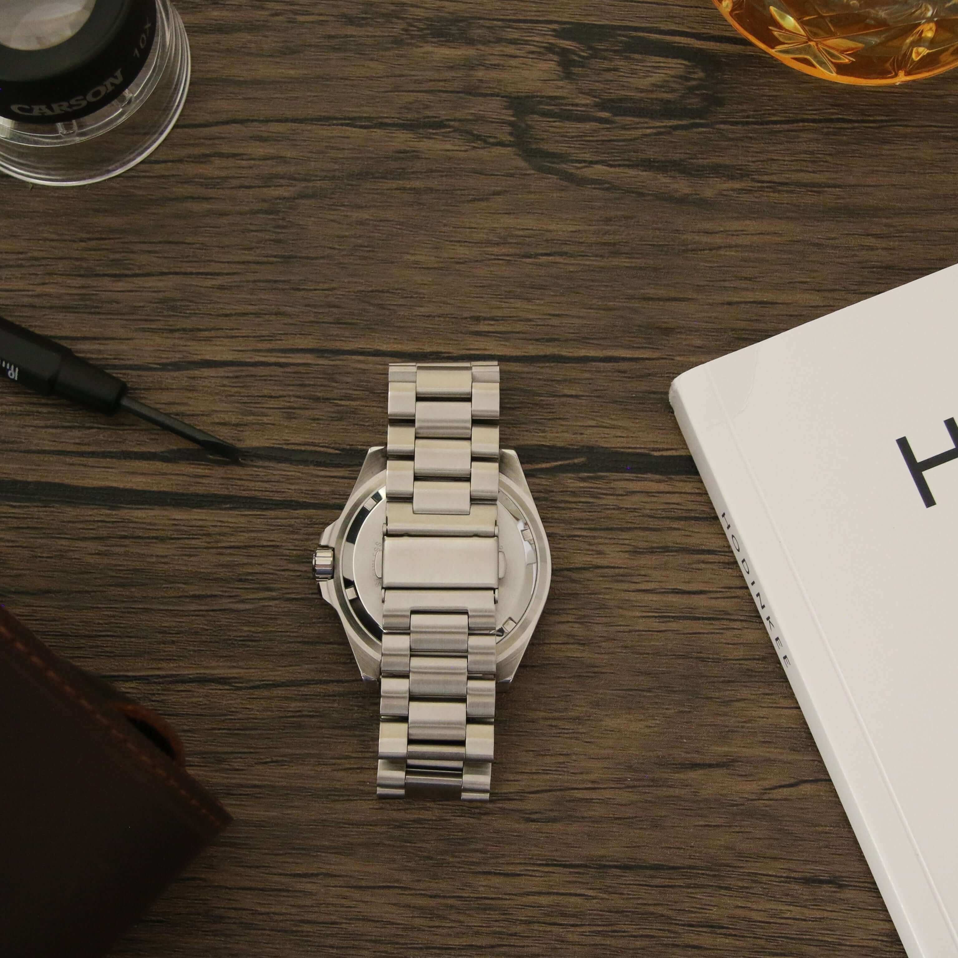 The Beaconsfield comes with everything you need to replace your current watch strap including spring bars, removal tool, link removal tool.